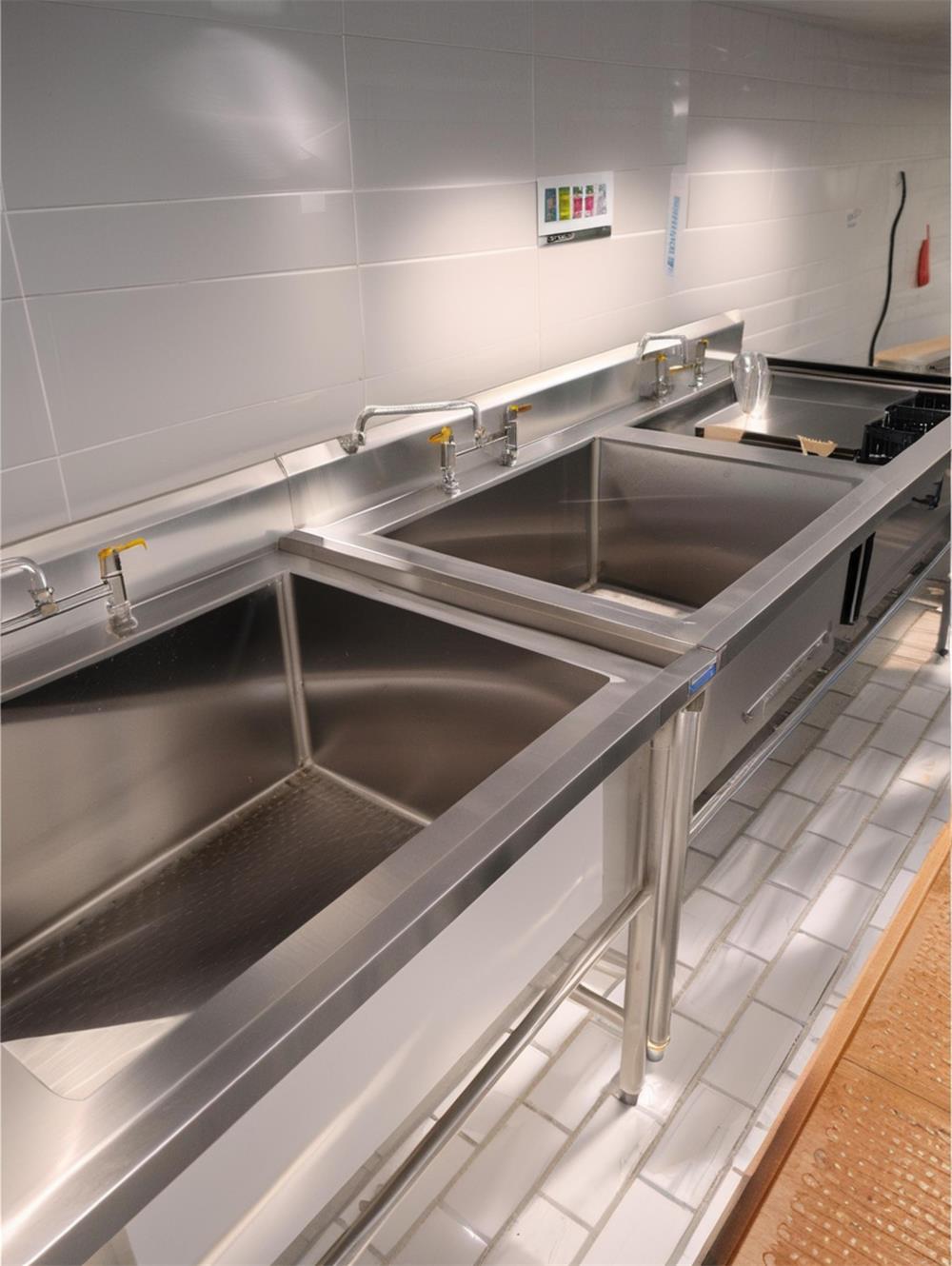 -地面和墙面使用防滑、易清洁、耐用的材料,如防滑瓷砖和不锈钢墙面。